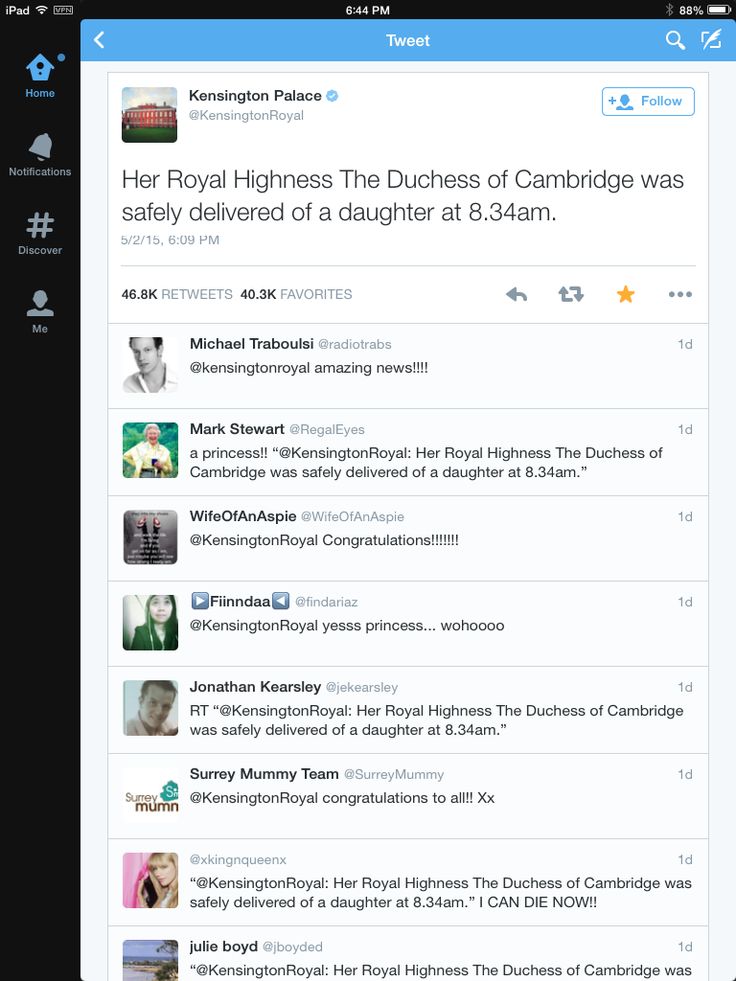 We live in a world now where royals reveal important information via Twitter.  It is interesting to me to think about that:  How we now live in a world where important pieces of information make it onto Twitter faster than is heard about through word-of-mouth.  I know that to most of you this isn’t important, but I think that this shows a difference in the way information is disseminated across media.